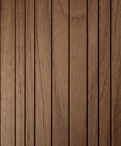 Селект — коллекция минималистичных дверей с фрезеровкой по натуральному шпону. Рельеф на поверхности полотна создаёт игру света и тени, добавляя пространству динамичности и визуального объёма. Двери Селект в сочетании со стеновыми панелями и мебельными фасадами, повторяющими лаконичный дизайн, создают единое стилевое решение.