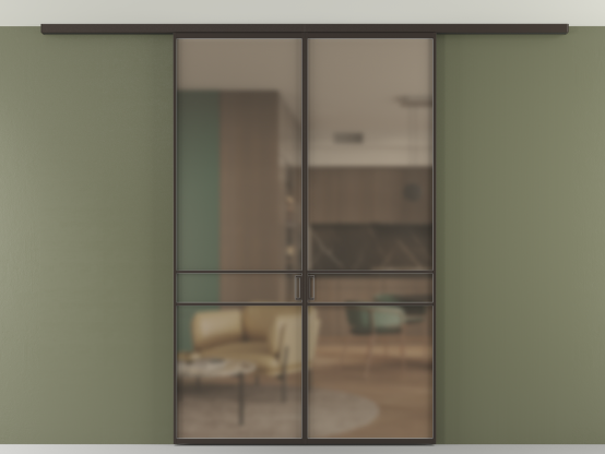 Во всех алюминиевых перегородках, независимо от типа установки, используется компланарный раздвижной механизм, благодаря которому декоративная крышка и полотно находятся в одной плоскости.